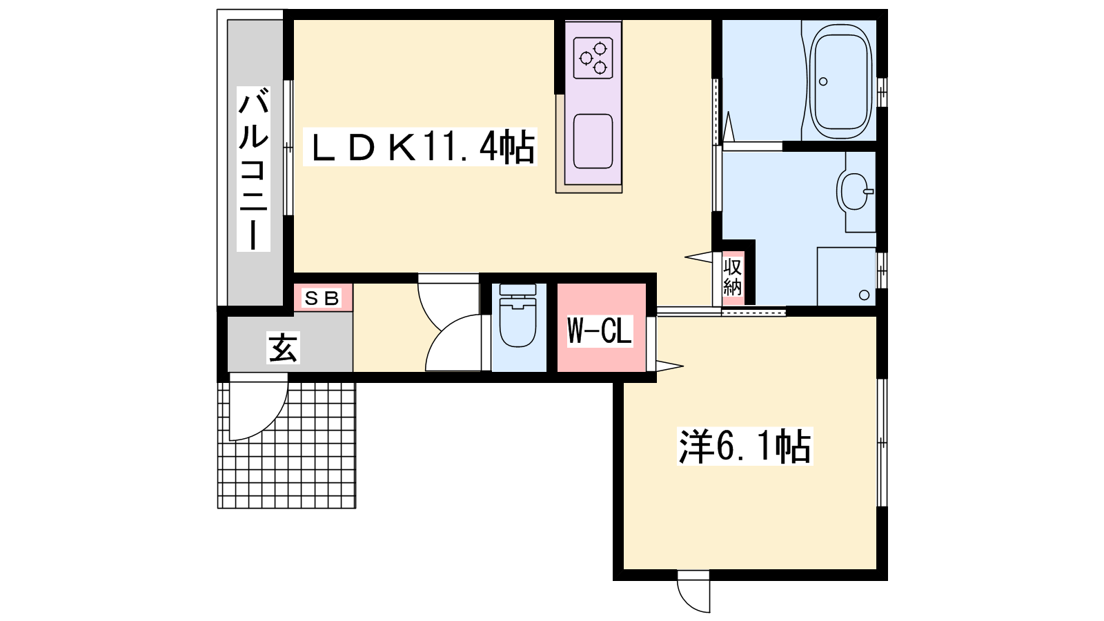 - LDK11.4帖、洋室6.1帖