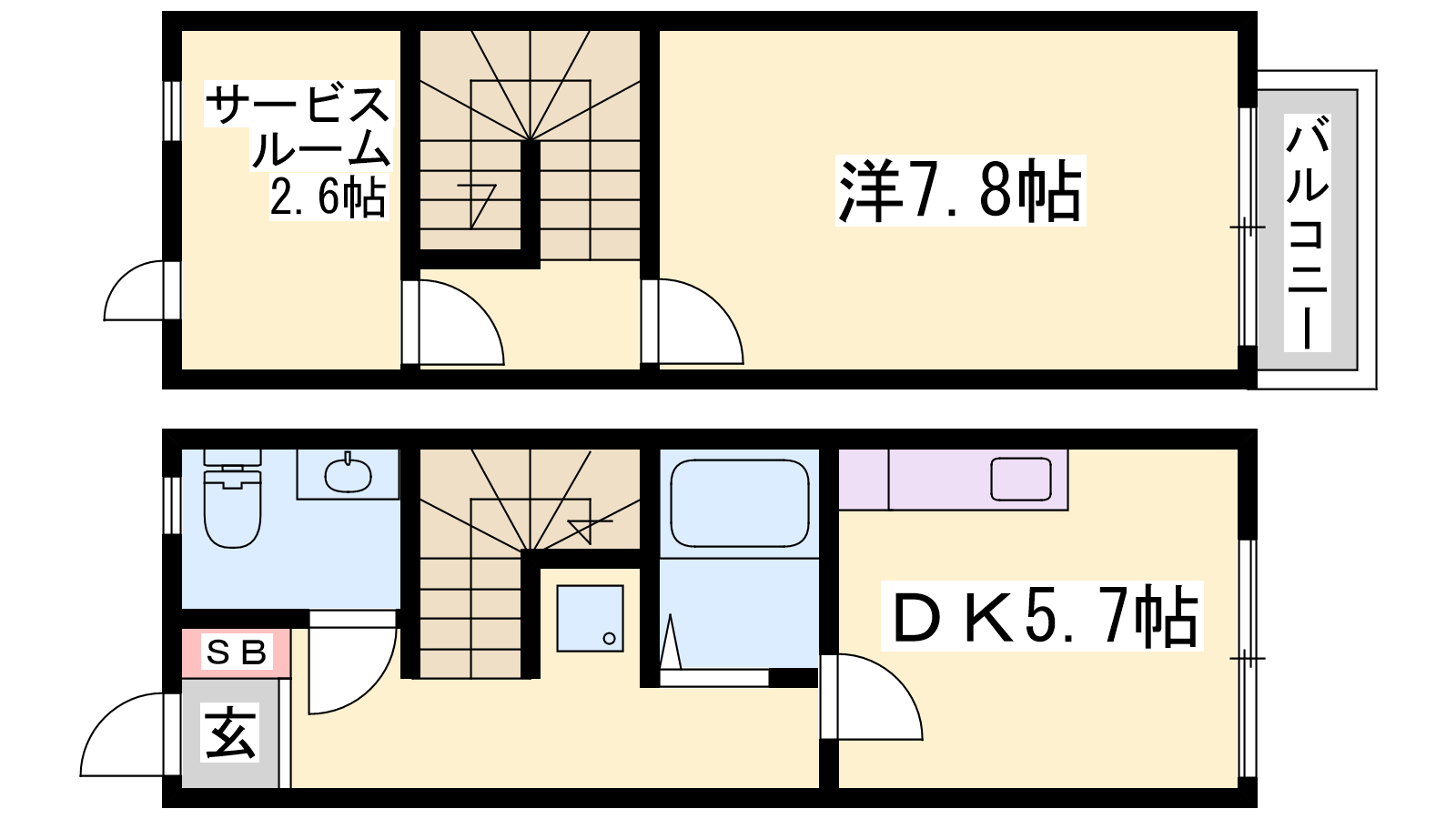 - DK5.75帖、洋室7.875帖、S2.625帖