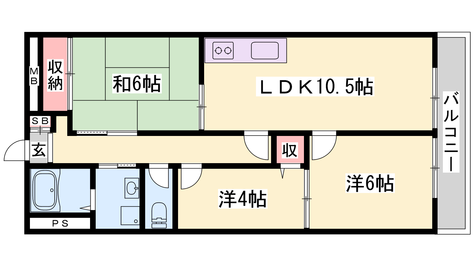 - LDK10.5帖、洋室6帖、洋室4帖、和室6帖