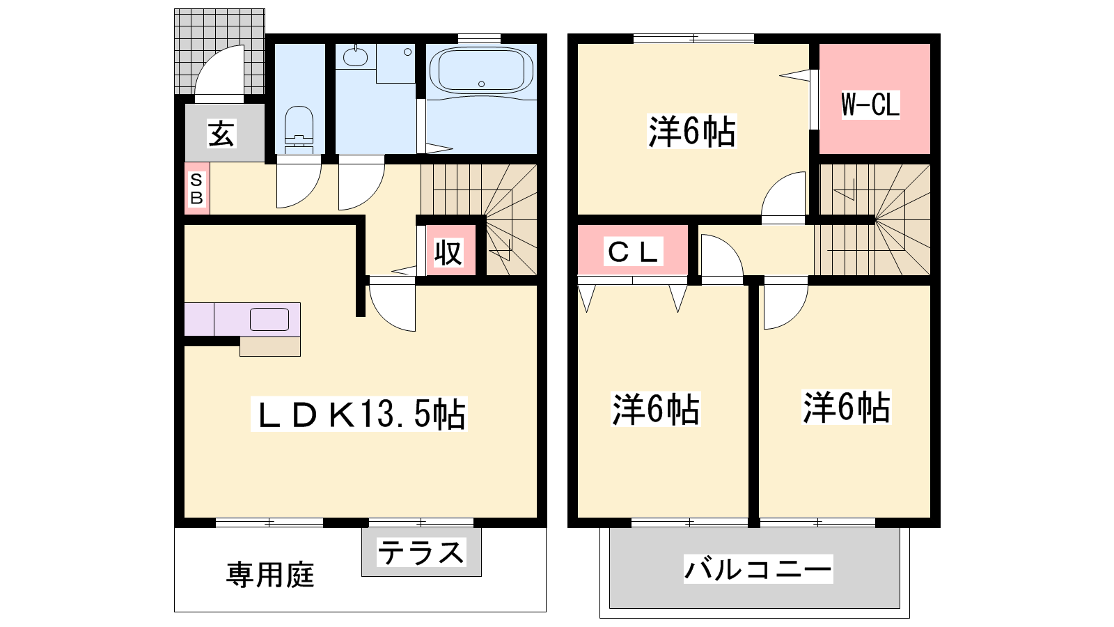 - LDK13.5帖、洋室6帖、洋室6帖、洋室6帖