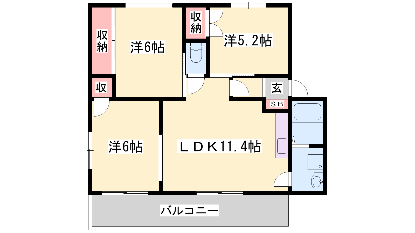 - LDK11.4帖、洋室6帖、洋室6帖、洋室5.2帖