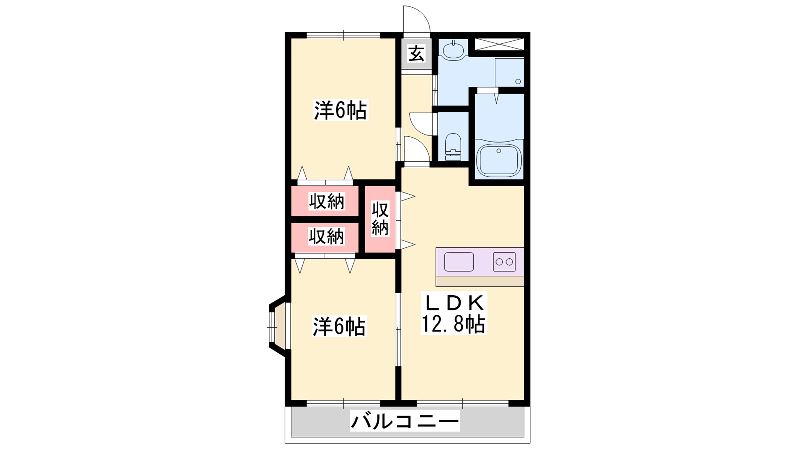 - LDK12.8帖、洋室6帖、洋室6帖