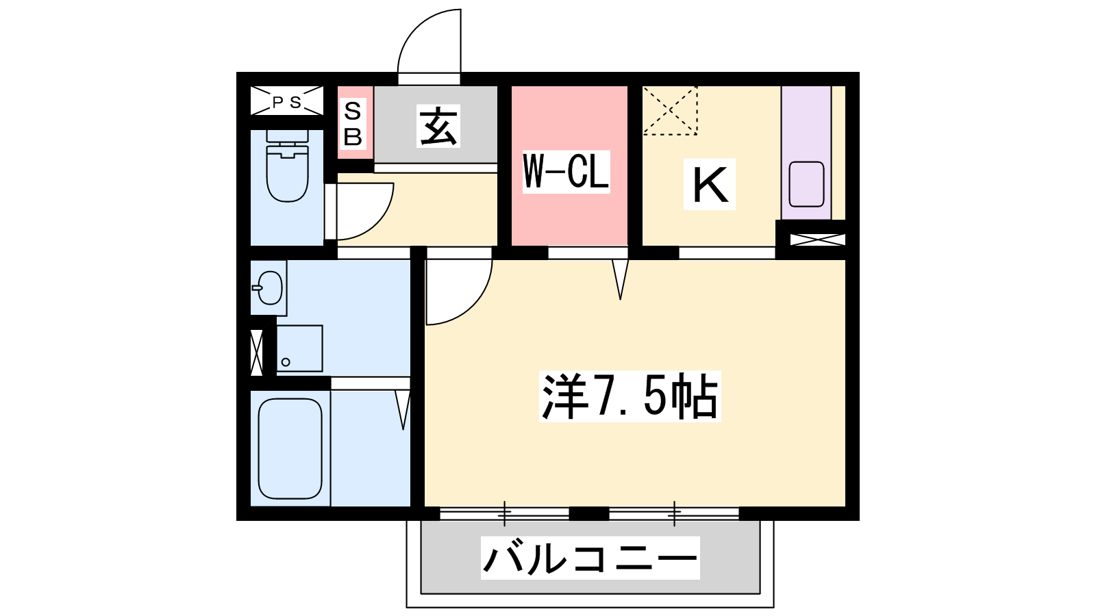 - K2.5帖、洋室7.5帖