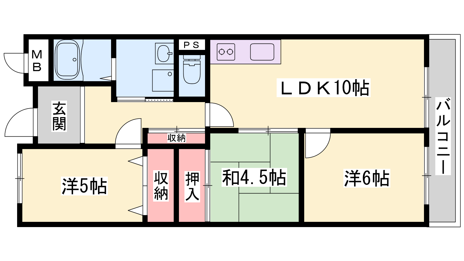 - LDK10帖、洋室6帖、洋室5帖、和室4.5帖