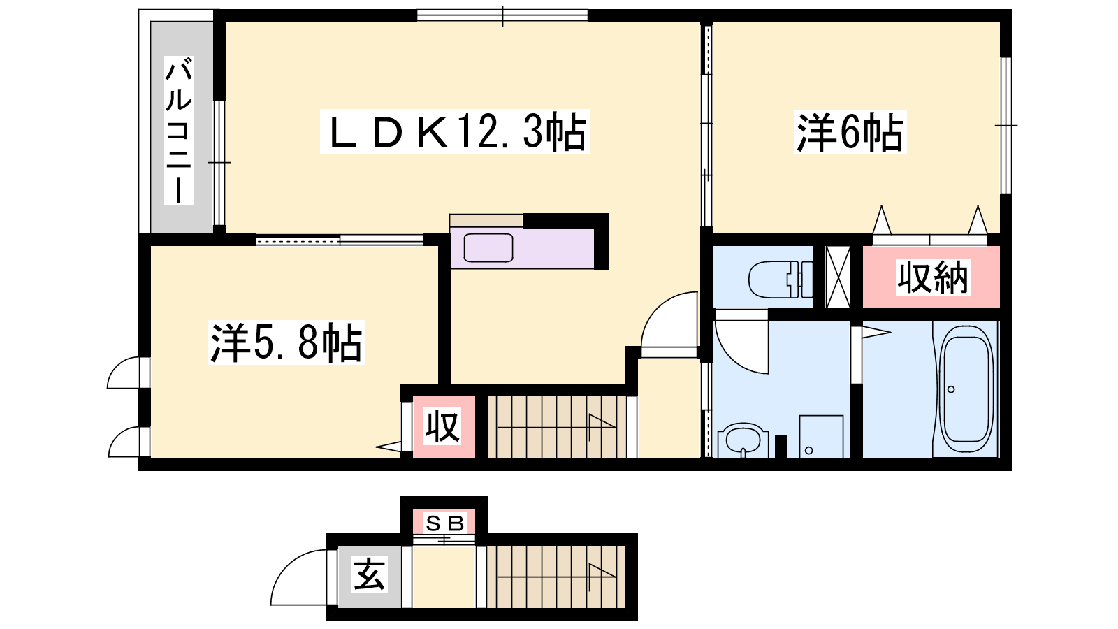 - LDK12.3帖、洋室6帖、洋室5.8帖