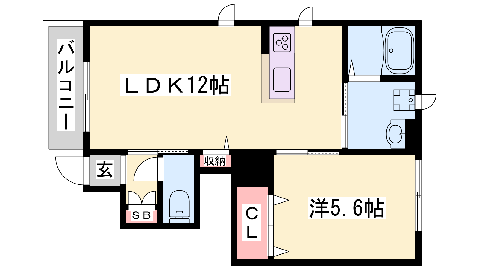 - LDK12帖、洋室5.6帖