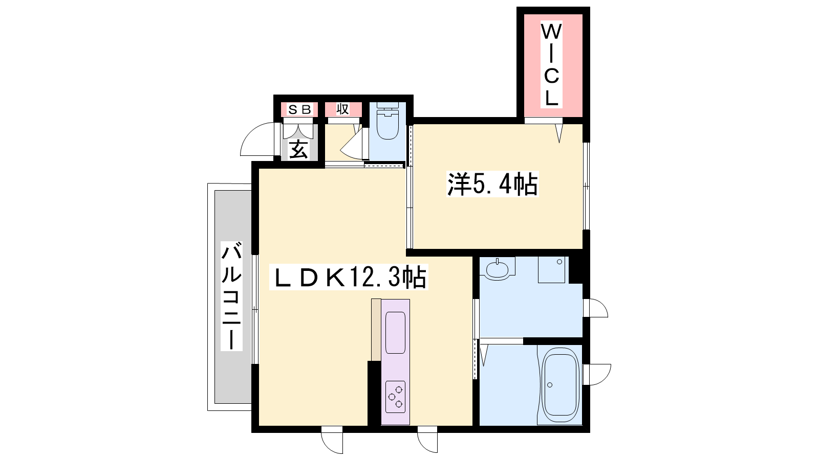- LDK12.3帖、洋室5.4帖