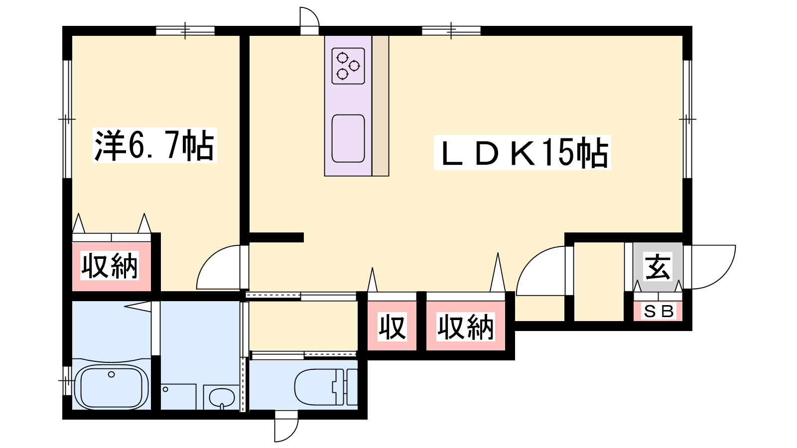 - LDK15帖、洋室6.7帖