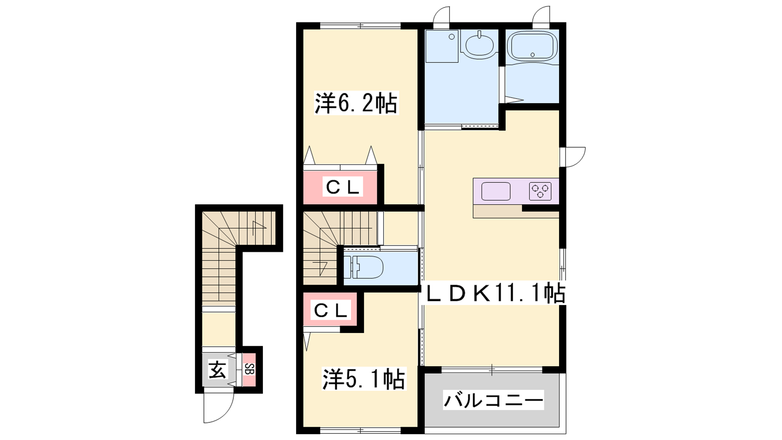 - LDK11.1帖、洋室6.2帖、洋室5.1帖