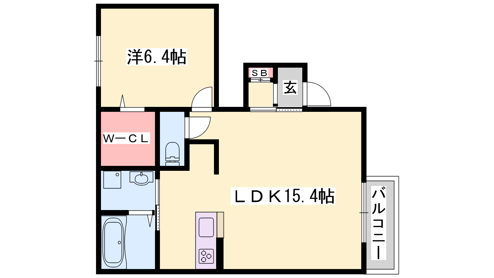 - LDK15.4帖、洋室6.4帖