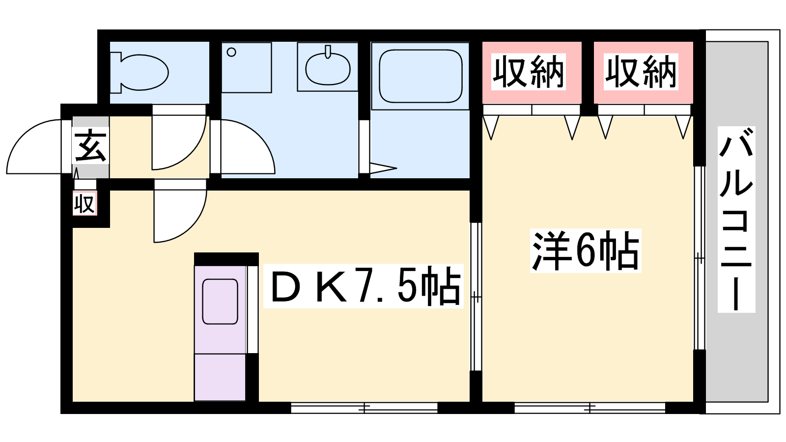 - DK7.5帖、洋室6帖