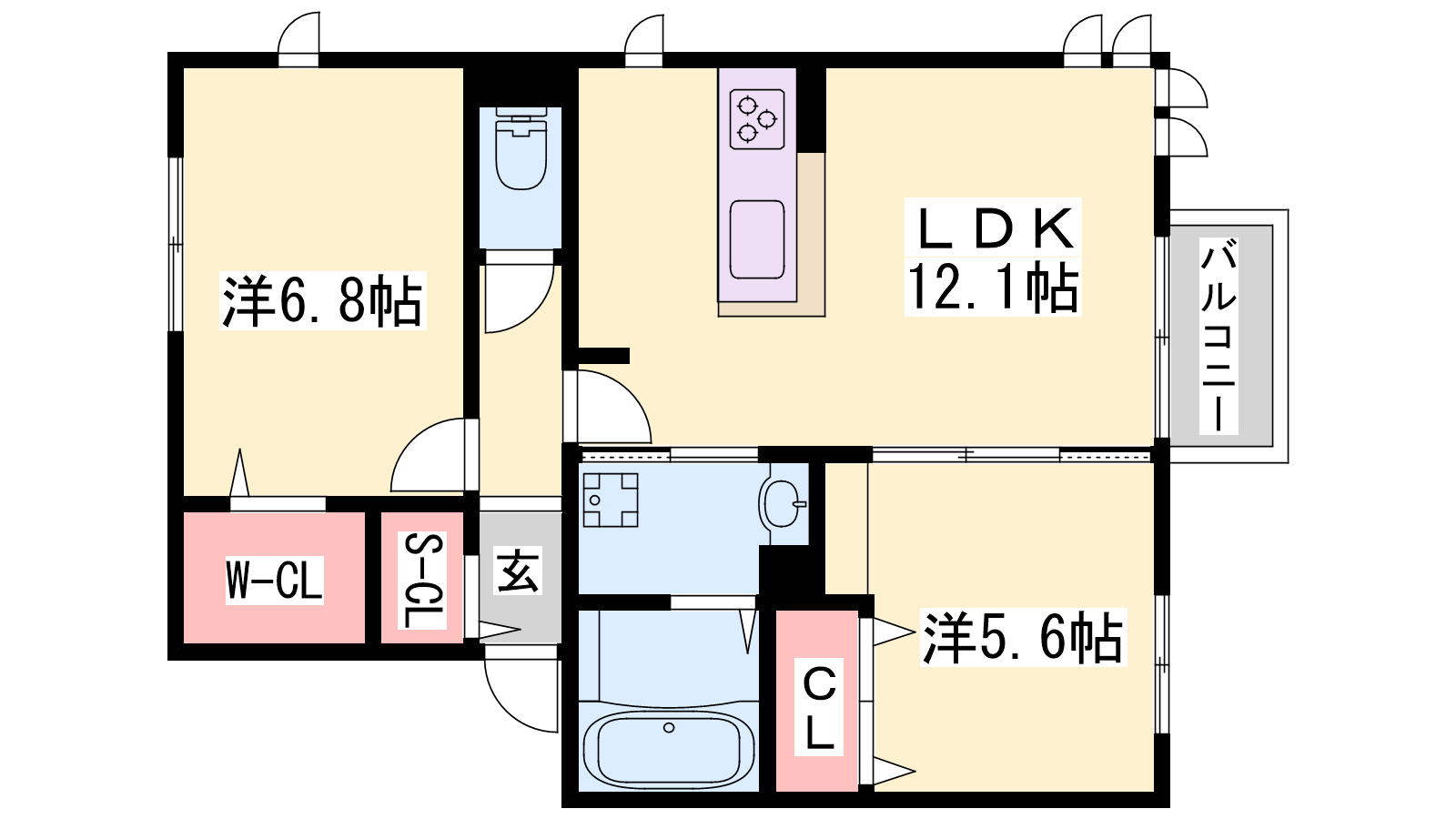 - LDK12.19帖、洋室6.89帖、洋室5.6帖
