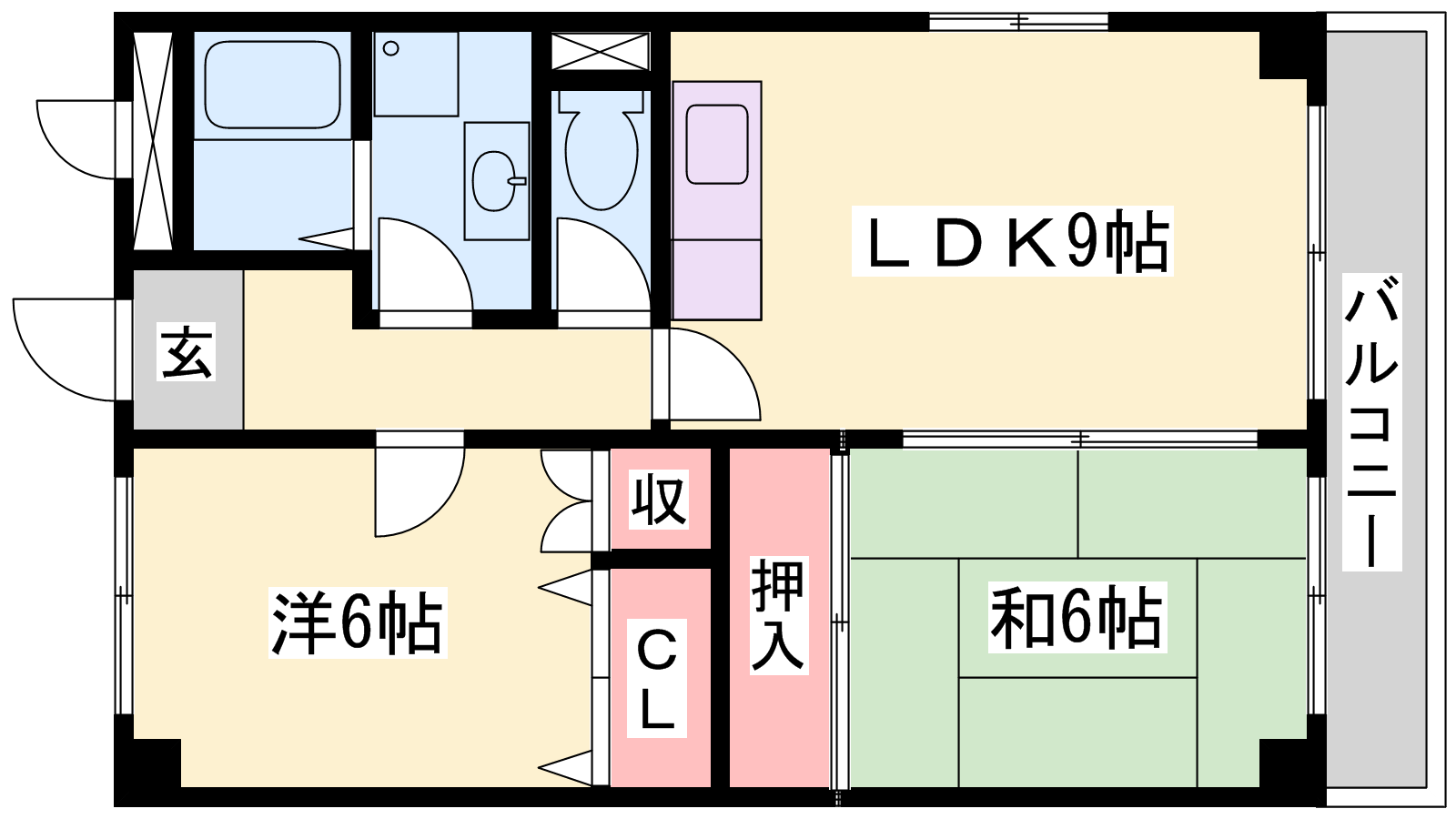 - LDK9帖、洋室6帖、和室6帖