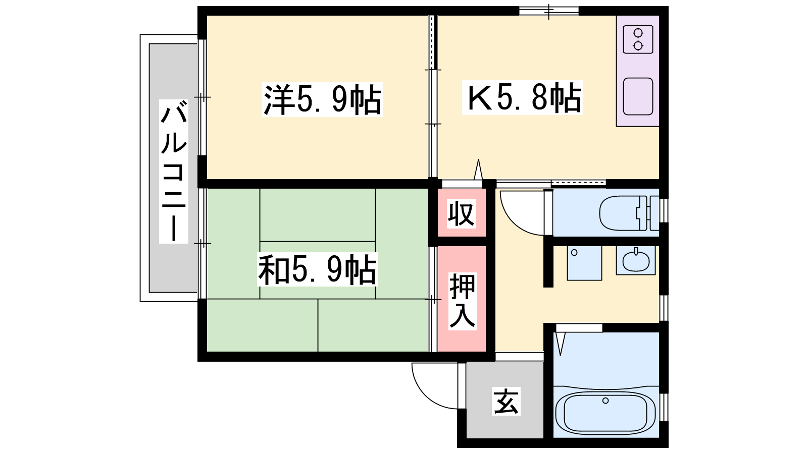 - K5.8帖、洋室5.9帖、和室5.9帖