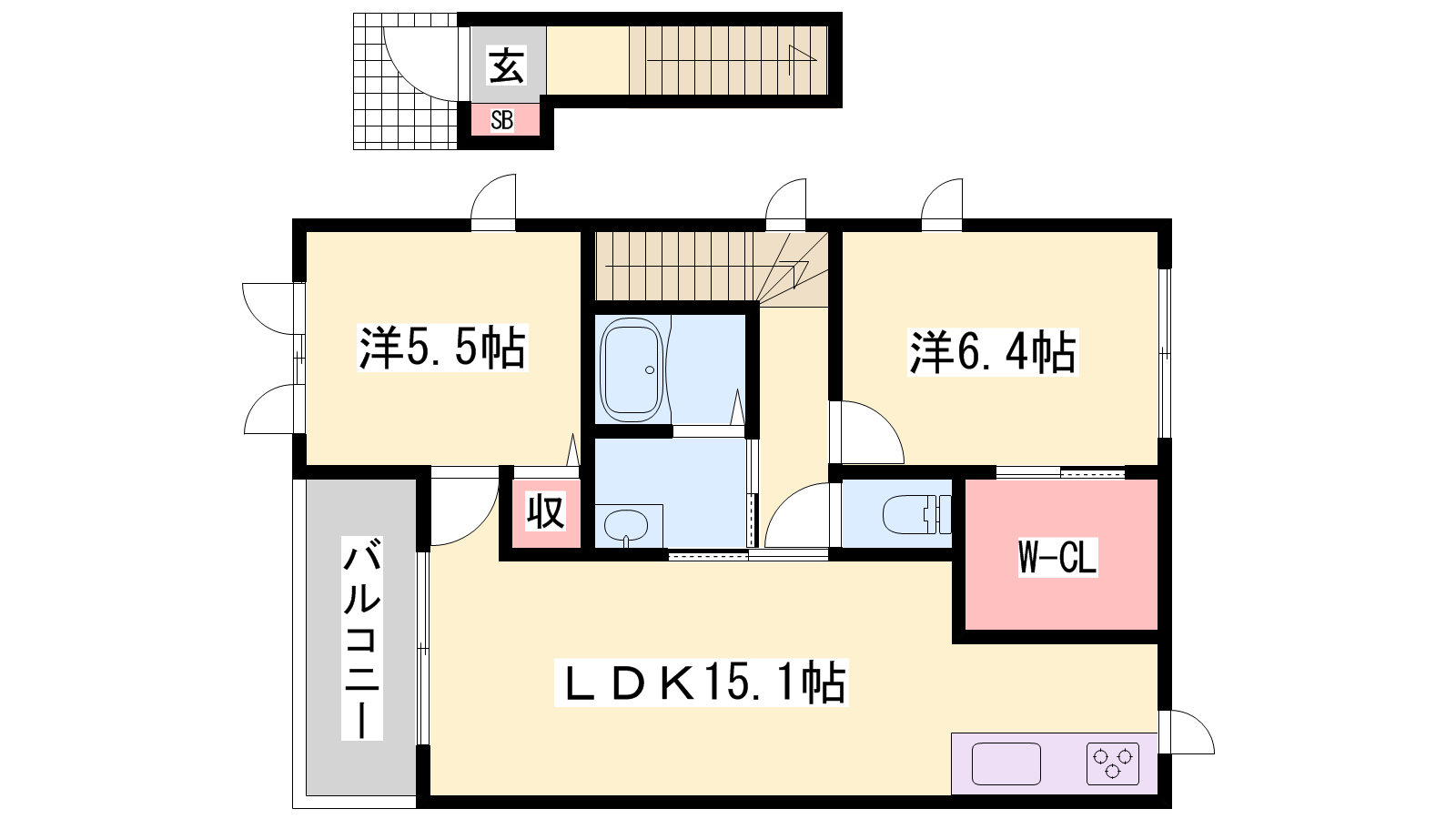 - LDK15.1帖、洋室5.5帖、洋室6.4帖