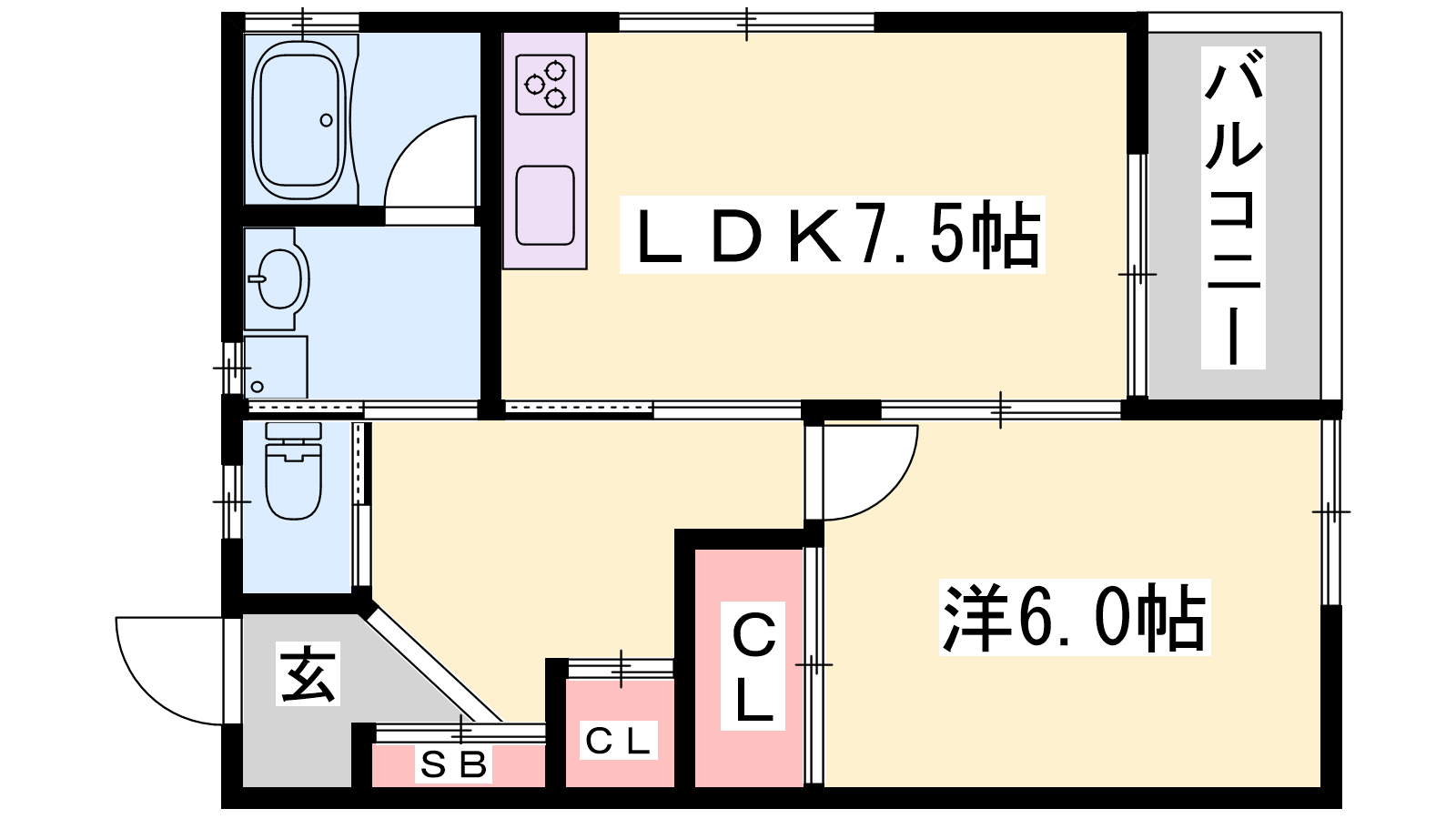 - LDK7.5帖、洋室6帖