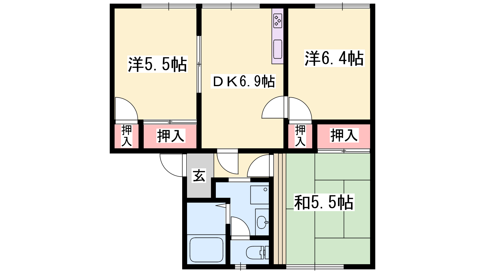 - DK6.9帖、洋室6.4帖、洋室5.5帖、和室5.5帖
