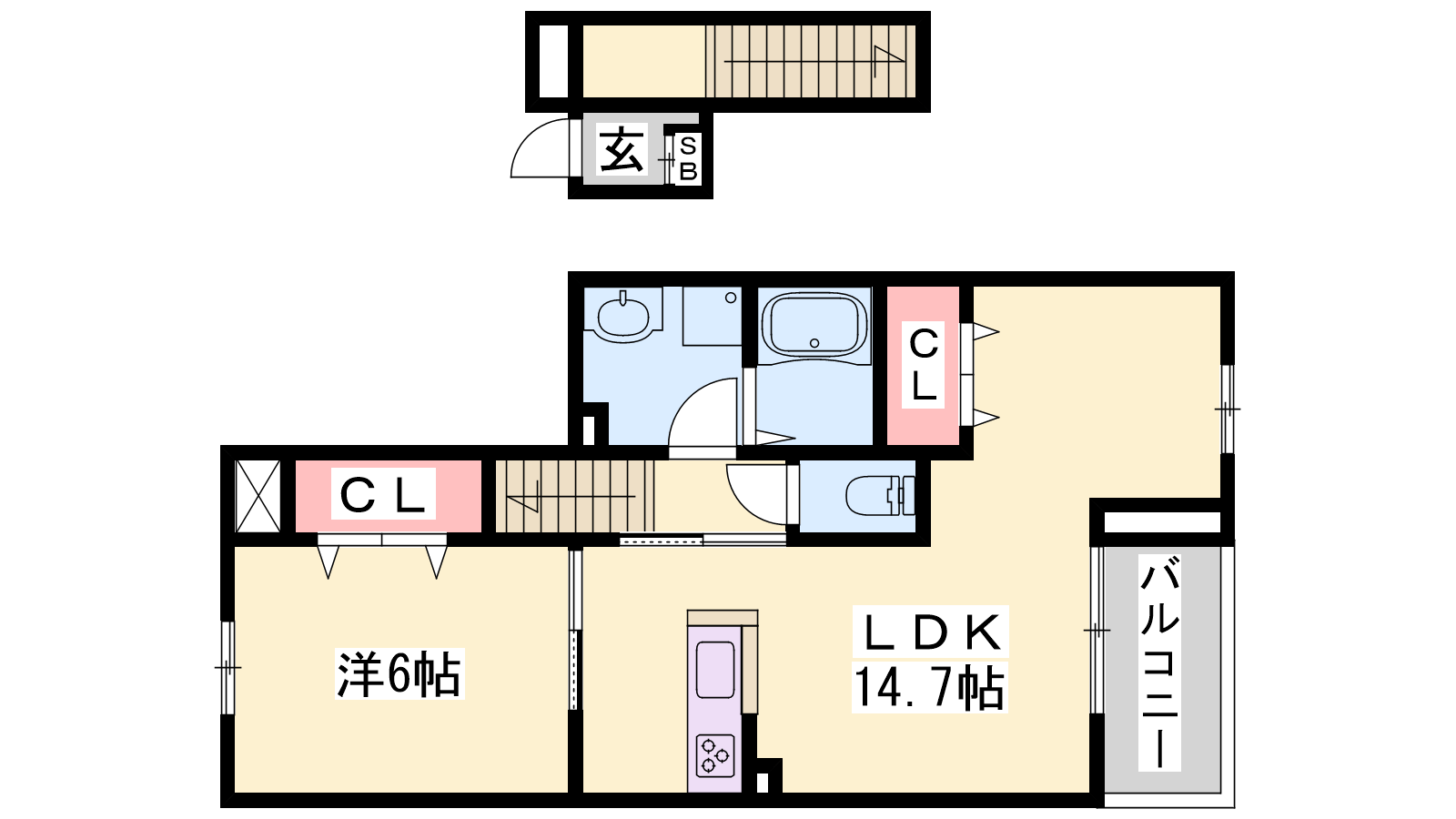 - LDK14.7帖、洋室6帖