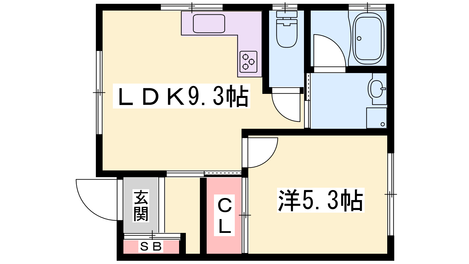 - LDK9.3帖、洋室5.3帖