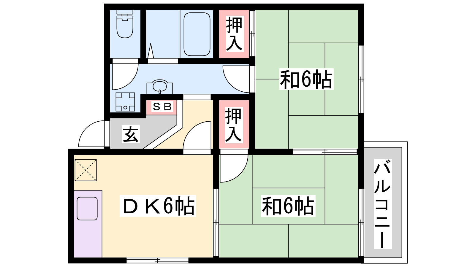 - DK6帖、和室6帖、和室6帖