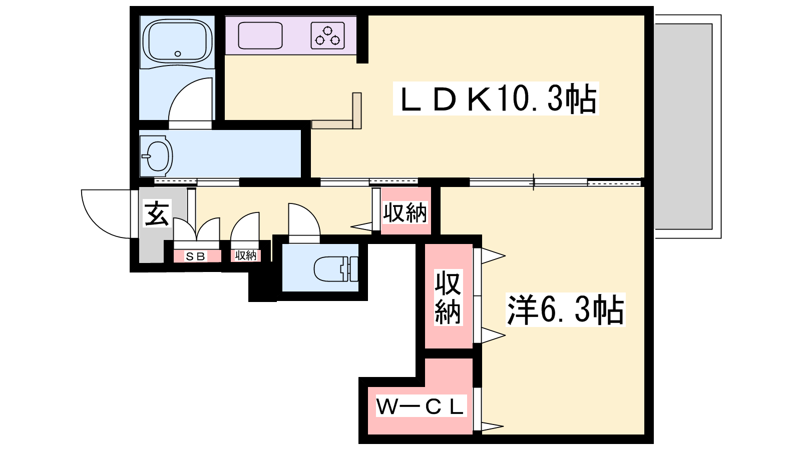 - LDK10.3帖、洋室6.3帖