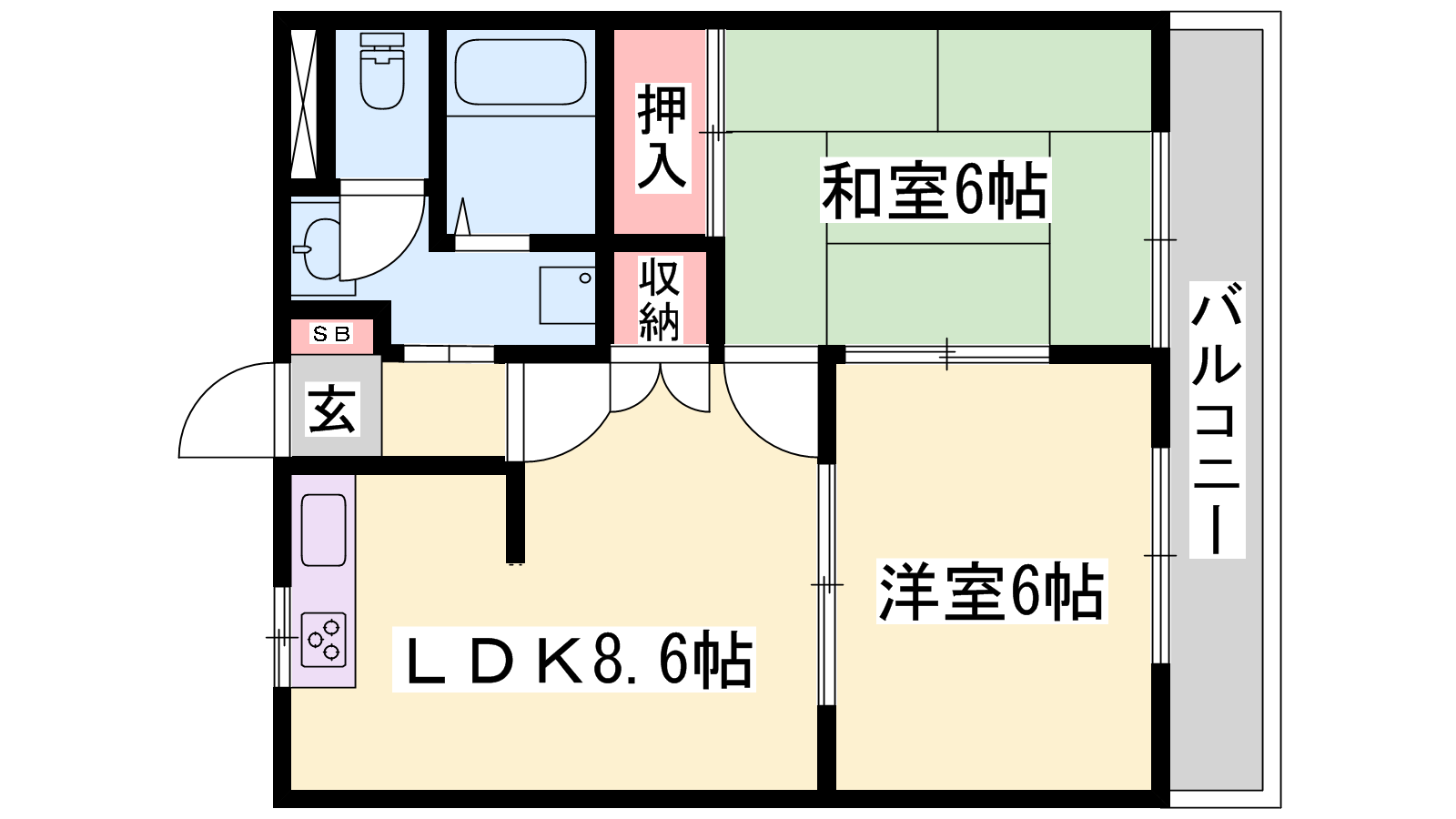 - LDK8.6帖、洋室5.9帖、和室6帖