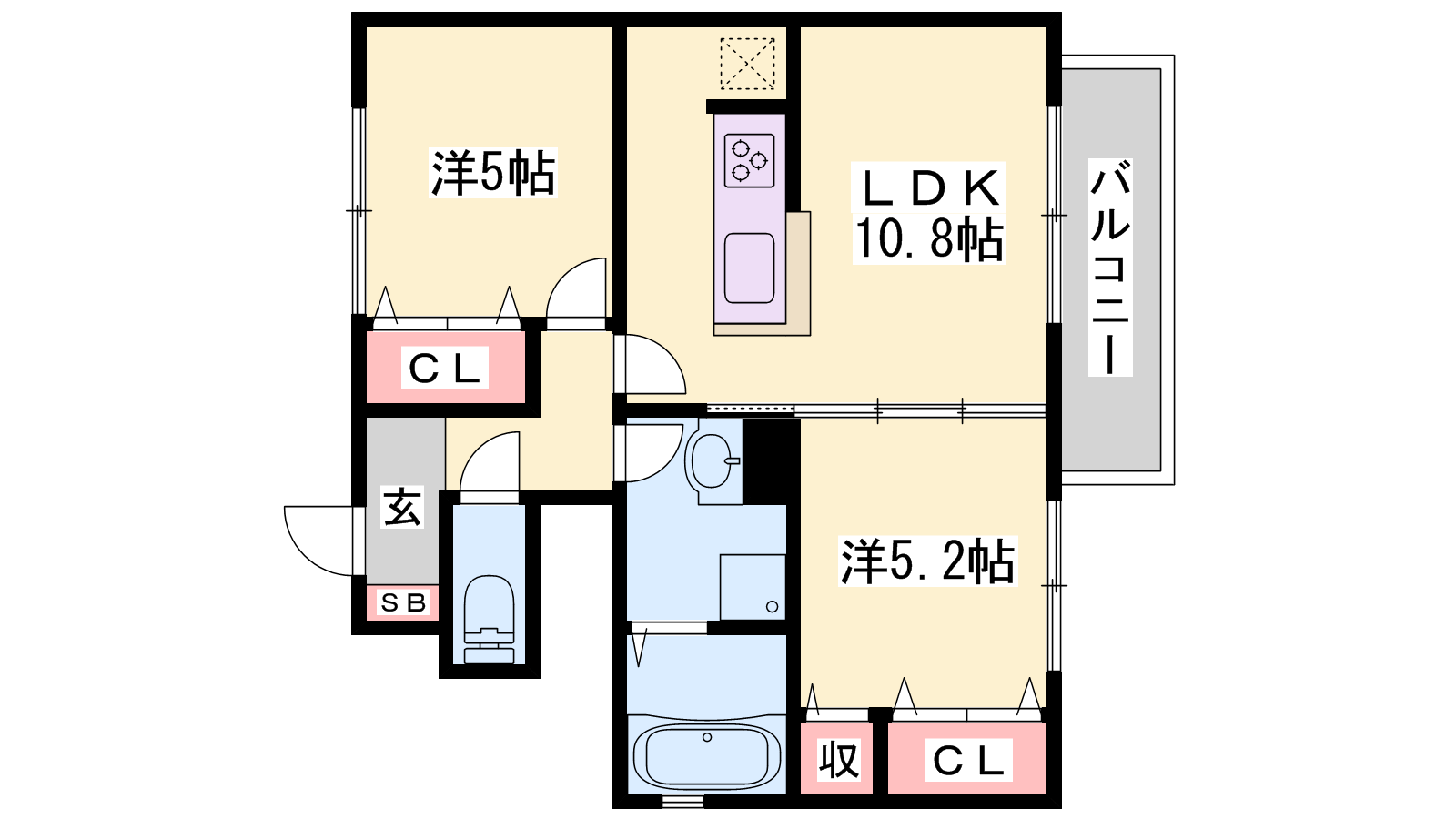 - LDK10.8帖、洋室5帖、洋室5.2帖