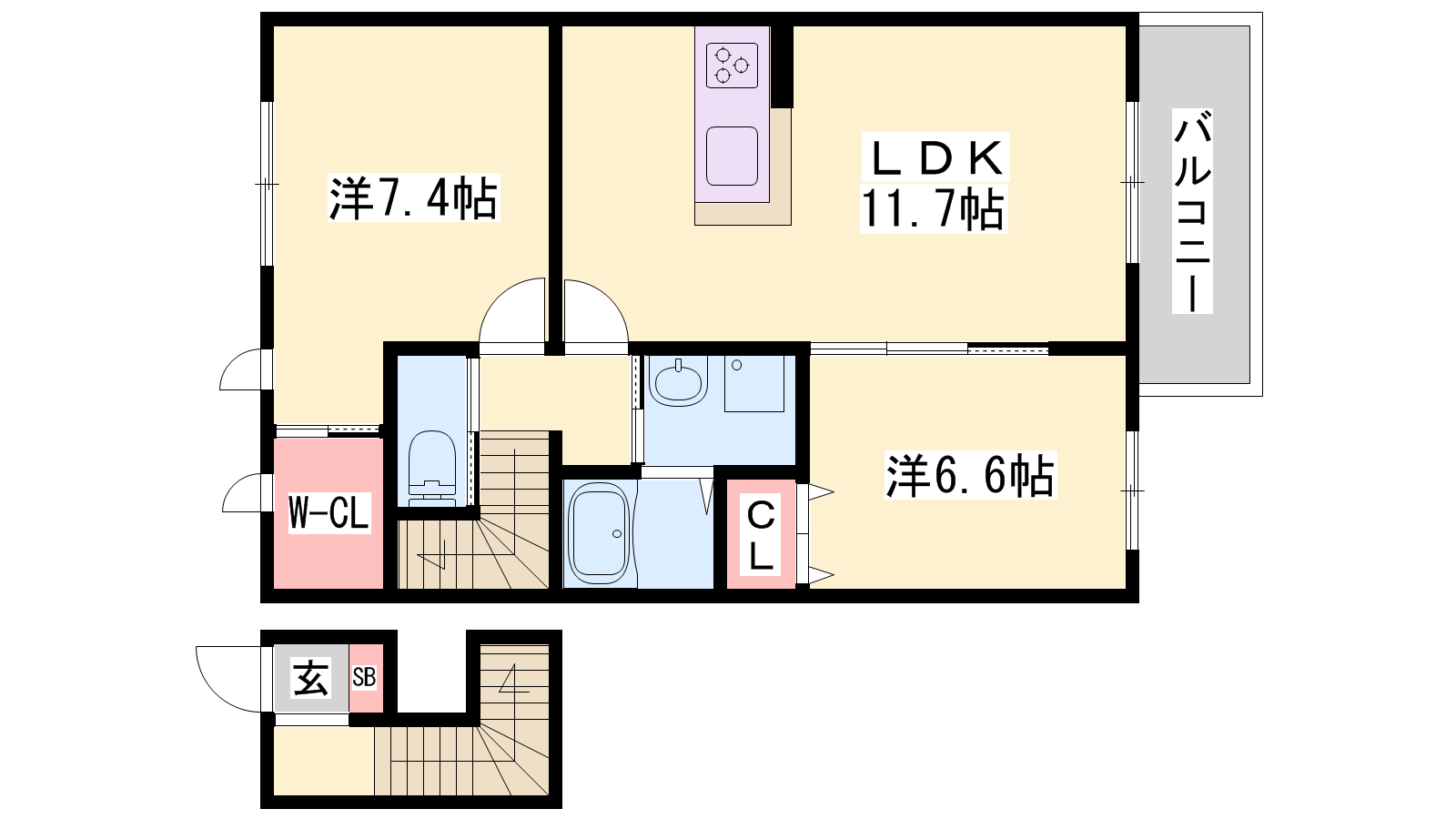 - LDK11.7帖、洋室7.4帖、洋室6.6帖