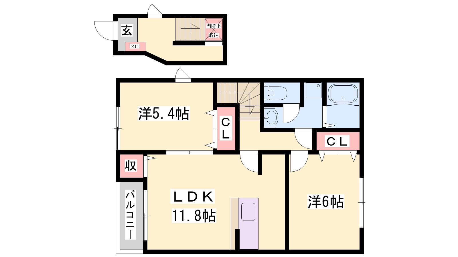 - LDK11.8帖、洋室6帖、洋室5.4帖