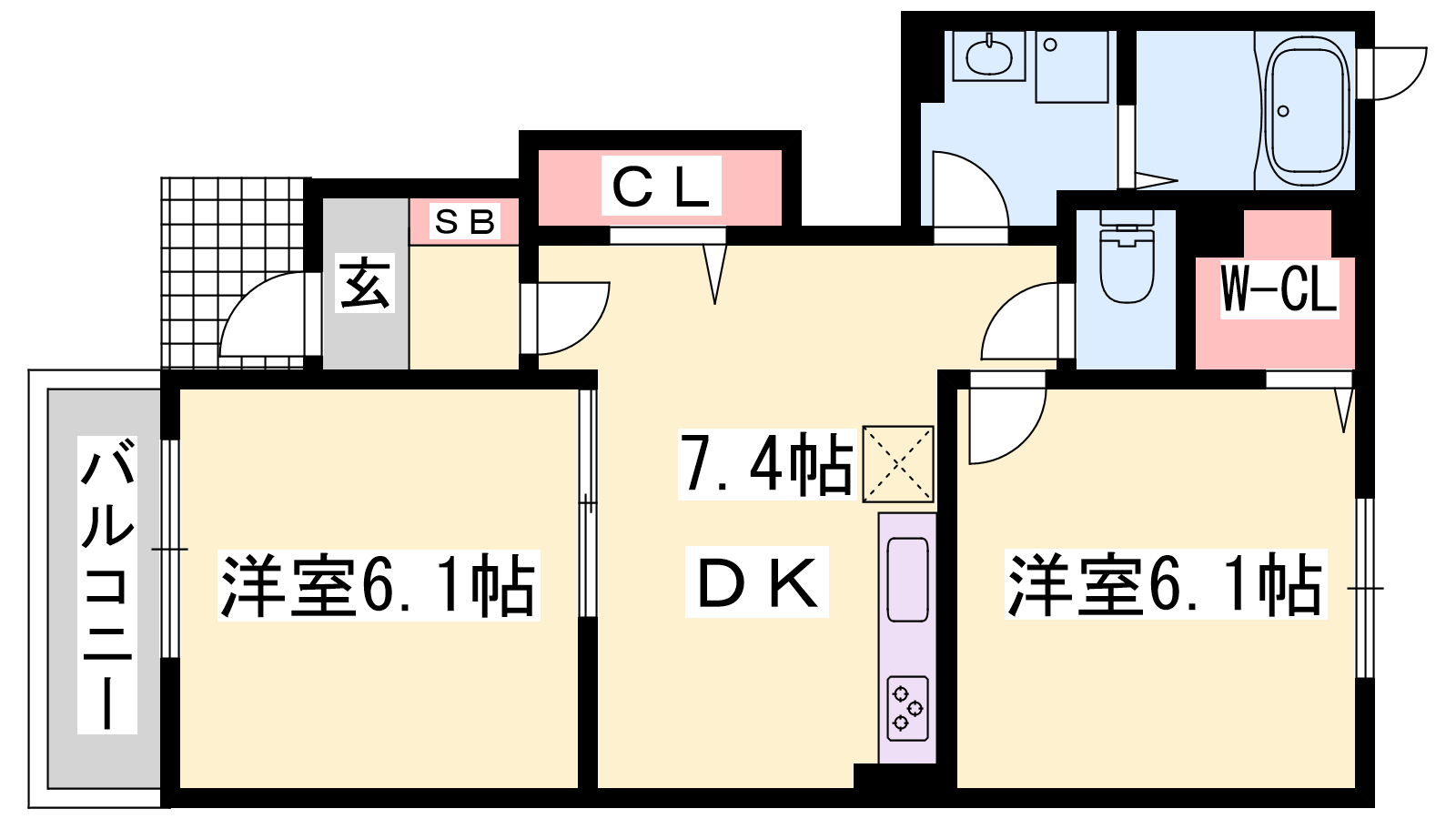 - DK7.4帖、洋室6.1帖、洋室6.1帖