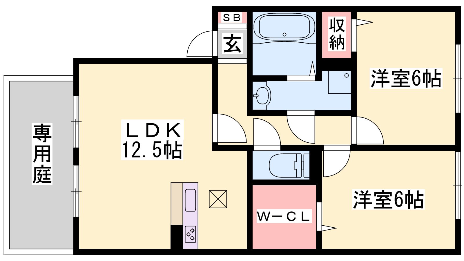 - LDK12.5帖、洋室6帖、洋室6帖