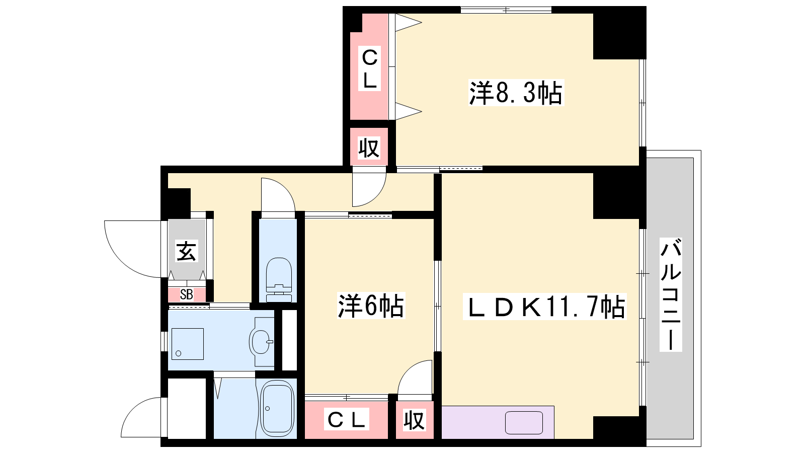 - LDK11.7帖、洋室8.3帖、洋室6帖