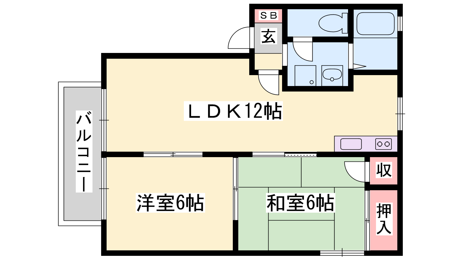 - LDK12帖、洋室5.9帖、洋室5.9帖